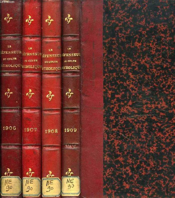 Revue Catholique des Associations Cultuelles et Paroissiales. 1906-1909. In-8. Relié demi-cuir. Bon état, Couv. convenable, Dos à nerfs, Quelques rousseurs. 4 volumes d'env. 400 pages chacun. Titre, date et fleurons dorés sur les dos. Etiquettes de code sur les dos. 1er plat du 3e volume légèrement abîmé en surface.. . . . Classification Dewey : 270-Histoire et géographie de l'Eglise