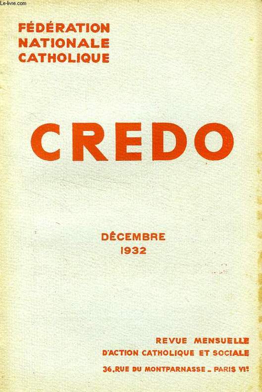 Fédération Nationale Catholique. 1932. In-8. Broché. Parfait état, Couv. convenable, Dos satisfaisant, Intérieur acceptable. 62 pages.. . . . Classification Dewey : 260-Théologie sociale chrétienne