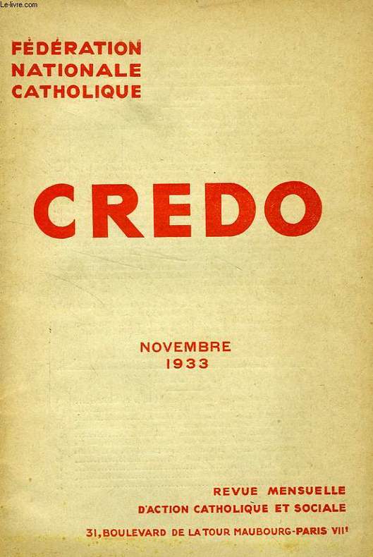 Fédération Nationale Catholique. 1933. In-8. Broché. Bon état, Couv. convenable, Dos satisfaisant, Intérieur acceptable. 62 pages.. . . . Classification Dewey : 260-Théologie sociale chrétienne
