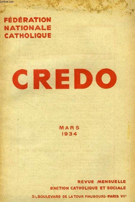 Fédération Nationale Catholique. 1934. In-8. Broché. Bon état, Couv. légèrement passée, Dos satisfaisant, Intérieur acceptable. 62 pages.. . . . Classification Dewey : 260-Théologie sociale chrétienne