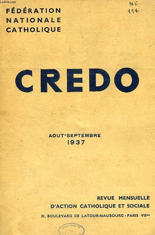 Fédération Nationale Catholique. 1937. In-8. Broché. Bon état, Couv. convenable, Dos satisfaisant, Intérieur acceptable. 64 pages. Tampon et annotation de bibliothèque sur le 1er plat.. . . . Classification Dewey : 260-Théologie sociale chrétienne