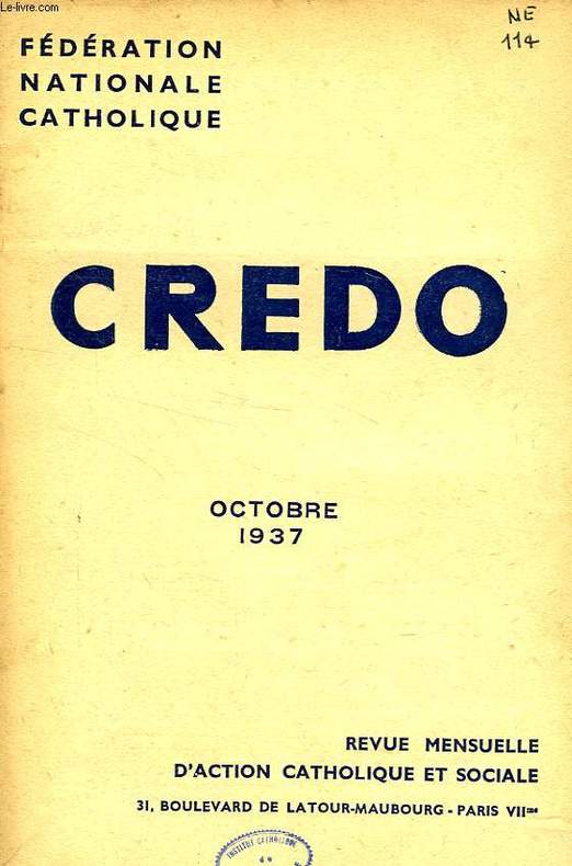 Fédération Nationale Catholique. 1937. In-8. Broché. Bon état, Couv. convenable, Dos satisfaisant, Intérieur acceptable. 64 pages. Tampon et annotation de bibliothèque sur le 1er plat.. . . . Classification Dewey : 260-Théologie sociale chrétienne