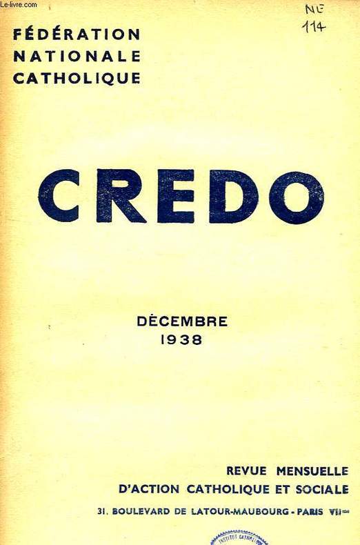 Fédération Nationale Catholique. 1938. In-8. Broché. Bon état, Couv. convenable, Dos satisfaisant, Intérieur acceptable. 64 pages. Tampon et annotation de bibliothèque sur le 1er plat.. . . . Classification Dewey : 260-Théologie sociale chrétienne