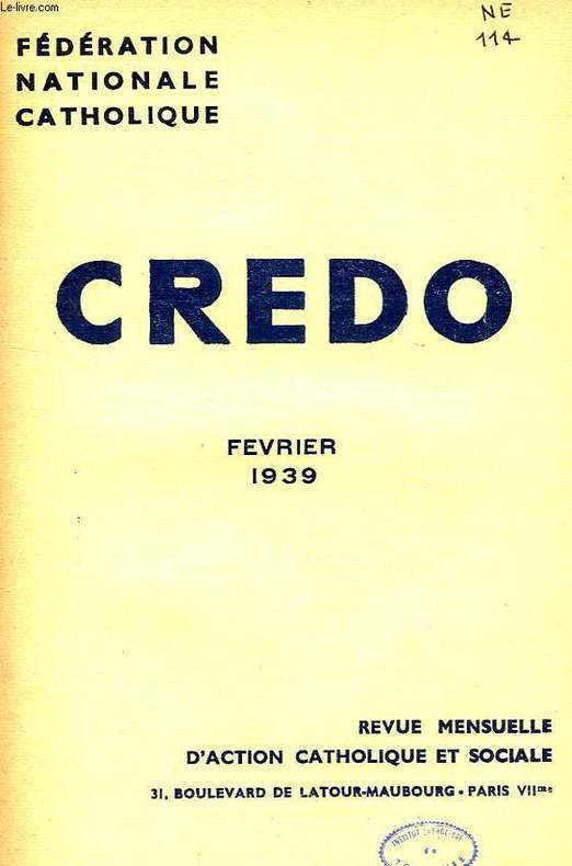 Fédération Nationale Catholique. 1939. In-8. Broché. Bon état, Couv. convenable, Dos satisfaisant, Intérieur acceptable. 64 pages. Tampon et annotation de bibliothèque sur le 1er plat.. . . . Classification Dewey : 260-Théologie sociale chrétienne