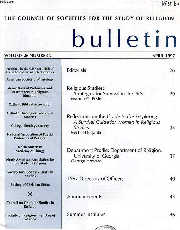 Council of Societies for the Study of Religion. 1997. In-4. Broché. Bon état, Couv. convenable, Dos satisfaisant, Intérieur frais. Plaquette paginée de 26 à 47. Texte sur 2 colonnes. Tampon et annotation de bibliothèque en 1re page.. . . . Classification Dewey : 420-Langue anglaise. Anglo-saxon