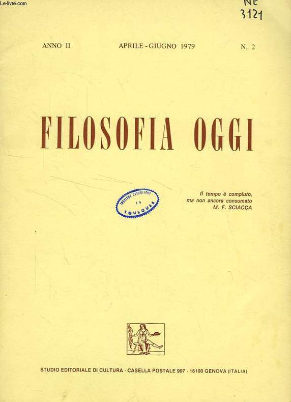 Paul Rostenne, Finalité vocationnelle et liberté ontolgique. Ettore Bonessio di Terzet, Critica filosofia arte. W. Eborowicz, La conception augustinienne de la justice divine vindicative... Classification Dewey : 450-Italien, roumain, rhéto-romain