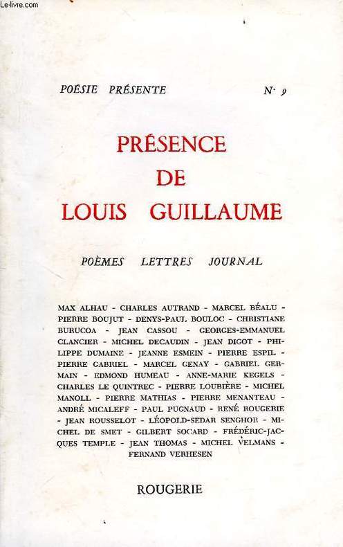 ROUGERIE (René) - GUILLAUME (Louis) - Max Alhau, Marcel Béalu, Pierre Boujut, Jean Cassou, Georges-Emmanuel Clancier, Edmond Humeau, Michel Manoll, Jean Rousselot,