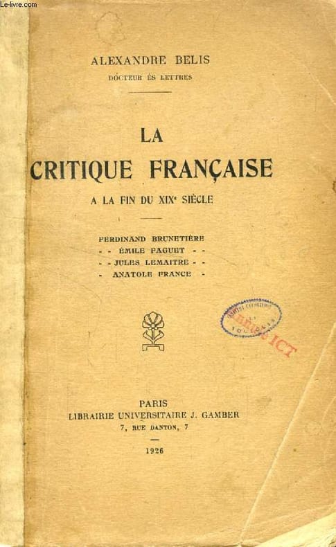 Ferdinand BRUNETIÈRE, Émile FAGUET, Jules LEMAÎTRE, Anatole FRANCE. Classification Dewey : 840.08-XIX ème siècle