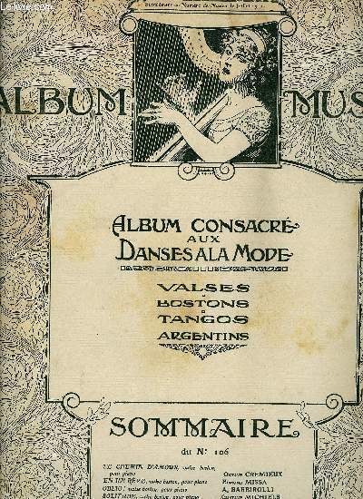 "Supplément du magazine mensuel MUSICA. Contient ""Le chemin d'amour"" de O. Crémieux, ""En un rêve"" de E. Missa, ""Oblio !"" de A. Barbirolli, ""Solitude"" de G. Michiels, ""El Chichirico"" de C. de Rhynal, ""Araca !... Que viene el chafle !"" de Sarrablo, ""El niño"" de L. Silesu et E. Gareri. Partitions pour piano et chant. Classification Dewey : 780.26-Partitions"