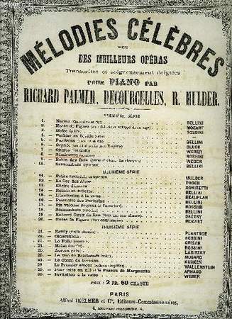 Alfred IKELMER & Cie. XIXème. In-4. En feuillets. Etat d'usage, Plats abîmés, Dos satisfaisant, Quelques rousseurs. 3 pages. Ornements en couverture. Déchirures. Imprimé sur du papier à la forme.. . . . Classification Dewey : 780.26-Partitions