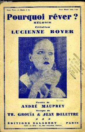 SALABERT. 1934. In-8. En feuillets. Etat d'usage, 1er plat abîmé, Dos satisfaisant, Déchirures. 2 pages de partitions, premier plat illustré d'une photographie noir et blanc de Lucienne Boyer.. . . . Classification Dewey : 780.26-Partitions