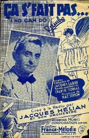 FRANCE-Melodie. 1945. In-8. En feuillets. Etat passable, Plats abîmés, Dos satisfaisant, Pliures. 2 pages de partitions, premier plat illustré d'une photographie Jacques Hélian.. . . . Classification Dewey : 780.26-Partitions