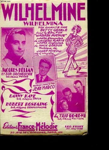 "E.F.M 2766 bis. Paroles françaises de Jacques PLANTE. Paroles de anglaises de Mack GORDON. Fox chanté par Betty GRABLE dans le film "" Wabash Avenue"" Classification Dewey : 780.26-Partitions"