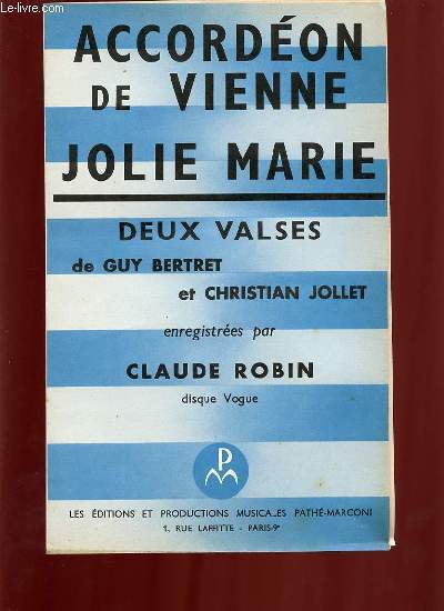 PATHE MARCONI. S.A.. non-daté. In-8. Broché. Bon état, Couv. convenable, Dos satisfaisant, Intérieur frais. Partitions d' Orchestres ( Piano conducteur, accordeon violons chant UT...).. . . . Classification Dewey : 780.26-Partitions