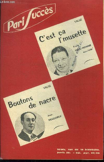 Paris succès. Non saté. In-8. Broché. Bon état, Couv. convenable, Dos satisfaisant, Intérieur frais. 4 pages augmentées de partitions en noir et blanc . Pour accordéon guitare, piano accordéon, contre-chant, accordéon guitare.. . . . Classification Dewey : 780.26-Partitions