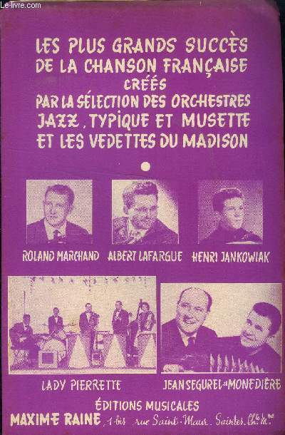 Editions musicales Maxime Raine. Non daté. In-8. Broché. Bon état, Couv. convenable, Dos satisfaisant, Intérieur frais. 2 pages augmentées de partitions en noir et blanc. Pour accordéon violon, trompette saxo ténor, bandonéon,saxo alto mi b.. . . . Classification Dewey : 780.26-Partitions