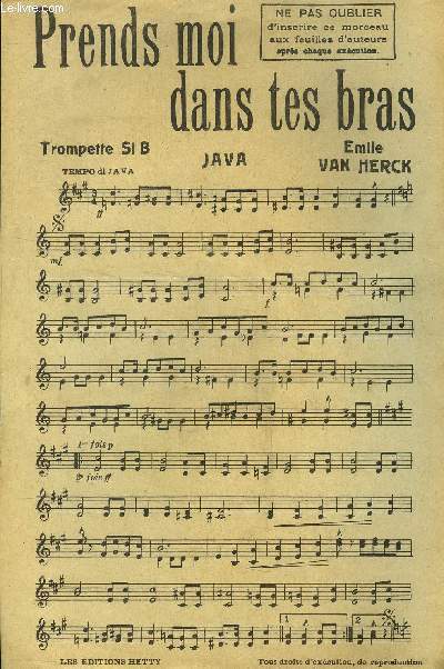 Les editions Hetty. Non daté. In-8. En feuillets. Bon état, Livré sans Couverture, Dos satisfaisant, Intérieur frais. 1 page de partitions en noir et blanc.. . . . Classification Dewey : 780.26-Partitions
