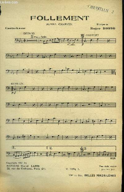 Editions marcel labbé. Non daté. In-8. En feuillets. Bon état, Livré sans Couverture, Dos satisfaisant, Intérieur frais. 2 pages de partitions en noir et blanc.. . . . Classification Dewey : 780.26-Partitions