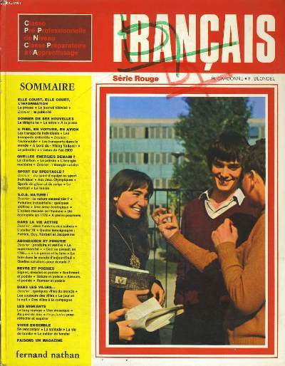 FERNAND NATHAN. 1984. In-4. Cartonné. Etat d'usage, Couv. légèrement passée, Dos frotté, Intérieur frais. 127 pages. Premier plat illustré en couleurs. Nombreuses photos en noir et blanc dans et hors texte. Quelques surlignages au feutre jaune n'altérant pas la lecture. Traits de feutre sur le premier plat.. . . . Classification Dewey : 372.6-Livre scolaire : français