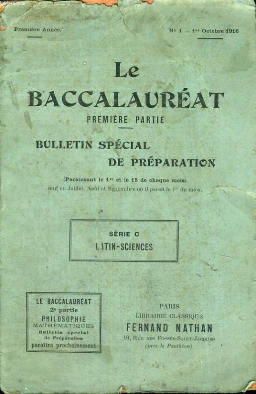 FERNAND NATHAN. NON DATE. In-8. Broché. Etat passable, Couv. défraîchie, Dos frotté, Intérieur acceptable. 12 pages.. . . . Classification Dewey : 370-Education