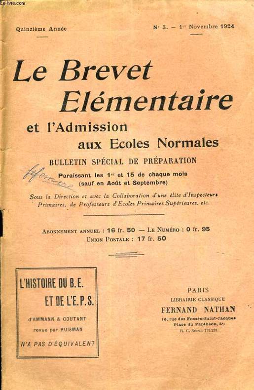 FERNAND NATHAN. NON DATE. In-8. Broché. Etat passable, Couv. défraîchie, Dos abîmé, Déchirures. Pages de 26 à 36. Déchirures alternant légèrement la lecture.. . . . Classification Dewey : 370-Education