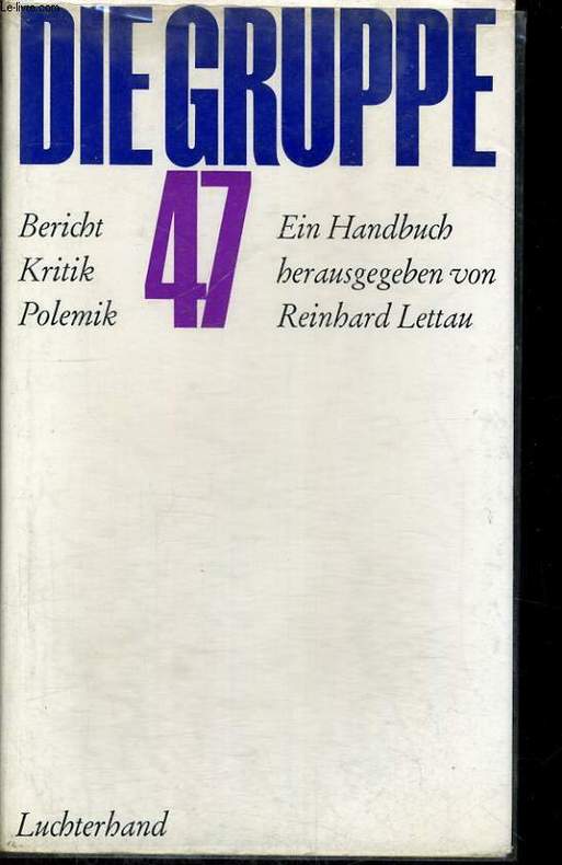 LUCHTERHAND. 1967. In-8. Broché. Etat d'usage, Couv. convenable, Dos satisfaisant, Intérieur frais. 565 pages. Texte en allemand. Tampon de bibliothèque et étiquette au dos. Jaquette et surjaquette en plastique transparent, légèrement abîmées.. Avec Jaquette. . . Classification Dewey : 830-Littératures des langues germaniques