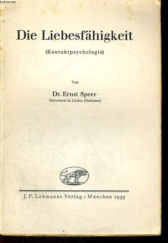 J.F. LEHMANNS VERLAG. 1935. In-8. Broché. Etat d'usage, Couv. légèrement passée, Dos abîmé, Intérieur acceptable. 142 pages. Texte en allemand. Ouvrage déboîté. Manque le premier plat de la jaquette. Coiffes abîmées.. . . . Classification Dewey : 150-Psychologie