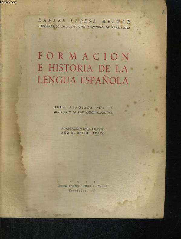 LIBRERIA ENRIQUE PRIETO. 1943. In-8. Broché. Etat d'usage, Plats abîmés, Coiffe en tête abîmée, Mouillures. 224 pages. Texte en espagnol. Quelques écritures sur la page de faux-titre n'altérant pas la lecture.. . . . Classification Dewey : 860-Littératures espagnole et portugaise