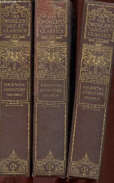 3 volumes. Vol. II : Literature of Persia : Part II + Literature of Japan. Vol. III : Literature of India. Vol. IV : Literautre of China + Literature of Arabia. Classification Dewey : 420-Langue anglaise. Anglo-saxon