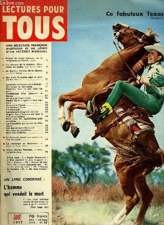Ce fabuleux Texas - Propos de bonne humeur sur la campagne, par Maurice Toesca - Eleuthère en action, par Pierre Nord - La Fayette, l'aristo de la liberté, par Alain Decaux - Qui parle le moins peut le plus, par Paul Morand, etc. Classification Dewey : 70.492-Lecture pour tous / Je sais tout / Tout savoir