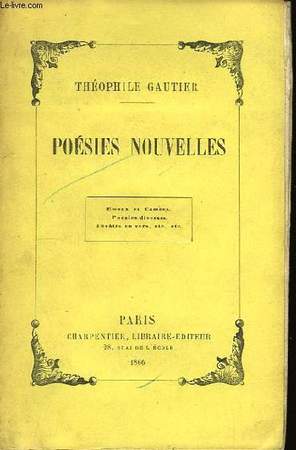 Émaux et Camées - Théâtre - Poésies diverses Théophile Gauthier était un poète, romancier et critique français né le 30 août 1811 et décédé le 23 décembre 1872. Il est connu pour sa contribution à la littérature française pendant la période romantique. Bien que la renommée de Gauthier repose principalement sur ses œuvres en prose, telles que son roman "Mademoiselle de Maupin" (1835), il a également écrit de la poésie. L'un de ses recueils de poésie notables s'intitule "Poésies Nouvelles", publié en 1839. Ce recueil met en valeur le style poétique de Gauthier, caractérisé par son emphase sur l'esthétique, la sensualité et son amour pour les thèmes exotiques. Gauthier a été influencé par le mouvement romantique et a souvent exploré des thèmes de passion, de désir et d'évasion dans ses œuvres. Dans "Poésies Nouvelles", Gauthier expérimente différentes formes poétiques, notamment des sonnets, des ballades et des poèmes lyriques. Le recueil reflète son intérêt pour la capture de moments fugaces de beauté, explorant des thèmes tels que l'amour, la nature et l'expérience humaine. Les poèmes de Gauthier expriment souvent un sentiment de mélancolie et de nostalgie, ainsi qu'une fascination pour l'exotisme et le surnaturel. Bien que la poésie de Gauthier n'ait pas reçu autant de reconnaissance que ses œuvres en prose, "Poésies Nouvelles" reste une contribution importante à la poésie romantique française. Il met en valeur son talent lyrique et sa capacité à évoquer des images et des émotions vives à travers ses vers. En résumé, "Poésies Nouvelles" de Théophile Gauthier est un recueil de poèmes qui illustre les sensibilités romantiques de l'auteur, explorant des thèmes tels que la beauté, le désir et l'évasion. Il témoigne du talent de Gauthier en tant que poète et de sa contribution significative à la littérature française du XIXe siècle. volume in-8 180x120, relié demi cuir, jolie reliure, très bel état intérieur, 279 pages. Paris, Charpentier 1863 ref/172