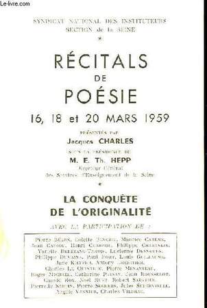 SYNDICAT NATIONAL DES INSTITUTEURS. 1959. In-12. Broché. Bon état, Couv. convenable, Dos satisfaisant, Intérieur frais. 40 pages.. . . . Classification Dewey : 841-Poésie