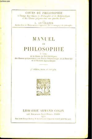 3e édition revue. Cours de philosophie, à l'usage des classes de philosophie et des mathématiques et des classes préparatoires aux Grandes écoles. Classification Dewey : 100-PHILOSOPHIE ET DISCIPLINES CONNEXES
