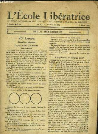 SYNDICAT NATIONAL DES INSTITUTEURS DE FRANCE ET DES COLONIES. 7 mars 1936. In-8. En feuillets. Bon état, Couv. légèrement passée, Dos satisfaisant, Quelques rousseurs. Paginé de 577 à 596. Quelques figures et partitions (accompagnées de chants) dans le texte. Quelques déchirures en marges.. . . . Classification Dewey : 370-Education