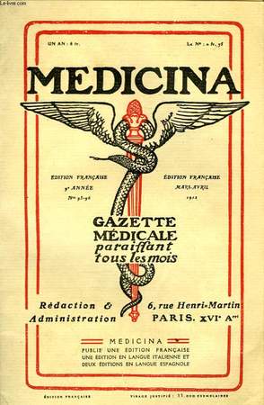 CHEZ L'AUTEUR. Mars - Avril 1912. In-8. Broché. Bon état, Couv. fraîche, Agraffes rouillées, Intérieur frais. 24 pages. Quelques illustrations en noir et blanc dans le texte et hors-texte. Lettrines.. . . . Classification Dewey : 610-Sciences médicales. Médecine
