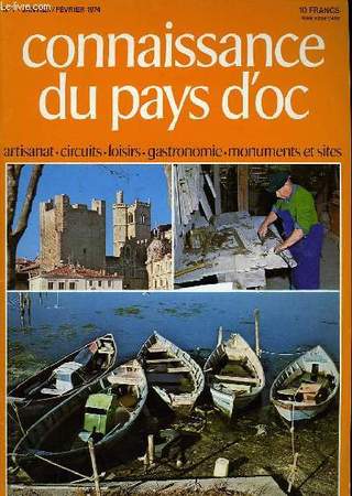 Jean Boekholt 0 A4 On y trouve des renseignements précieux sur la vie des villages , sur l'architecture , les loisirs , l'artisanat et la gastronomie . Très documentée et attachante revue qui n'eut que 82 numéros . Change de nom à partir du N° 10 pour s'appeler - Connaissance du pays d'Oc - . Avec de très belles photographies de Harold Chapman et A. Hampartzoumian . - 68 p. , 300 gr.