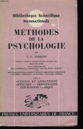 Traduit d'après la 2nde édition par Paul Fraisse. Bibliothèque Scientifique Internationale. Activité et Affectivité - Aptitudes - Personnalité - Psychologie clinique ... Classification Dewey : 150-Psychologie