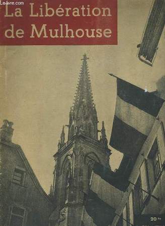 Mulhouse-Dornach, Paris, Les Editions Braun & Cie, (1945) ; brochure in-folio , couverture illustrée de photos aux 2 plats, titre en blanc sur fond rouge au 1er plat et 10 feuillets nonchiffrés de photographies légendées et d' 1 carte à pleine page.