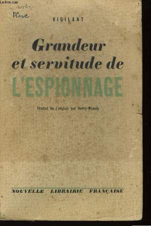 NOUVELLE LIBRAIRIE FRANCAISE. 1933. In-12. Broché. Etat d'usage, Tâchée, Coiffe en pied abîmée, Intérieur acceptable. 251 pages - dos taché. . . . Classification Dewey : 355.343-Services secrets, espionage