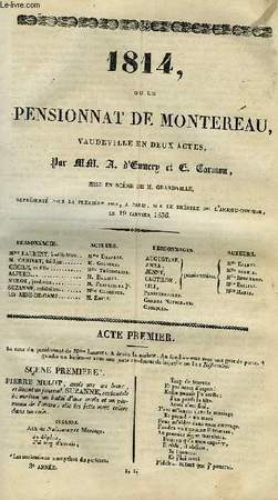 IMP. DE DONDEY-DUPRE. Non daté. In-8. En feuillets. Etat d'usage, Livré sans Couverture, Dos abîmé, Intérieur frais. 16 pages. Bandeau en noir et blanc. Texte sur 2 colonnes.. . . . Classification Dewey : 792-Théâtre