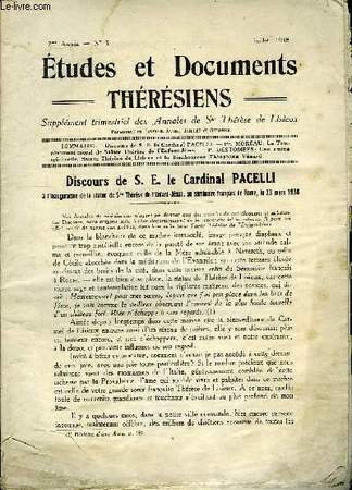 Supplément des Annales de Sainte Thérèse de Lisieux. Une amitié spirituelle, Ste Thérèse et le Bx Théophane Vénard - Discours de S.E. le Cardinal Pacelli ... Classification Dewey : 260-Théologie sociale chrétienne