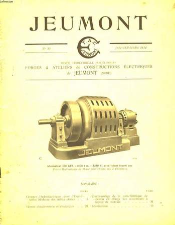 FORGES & ATELIER de CONSTRUCTIONS ELECTRIQUES de JEUMONT. Janvier - Mars 1934. In-4. Broché. Etat d'usage, Couv. convenable, Dos satisfaisant, Intérieur acceptable. 44 pages. Nombreux plans, dessins, schémas et illustrations en noir et blanc, dans le texte et hors-texte. Dos usé.. . . . Classification Dewey : 537-Electricité