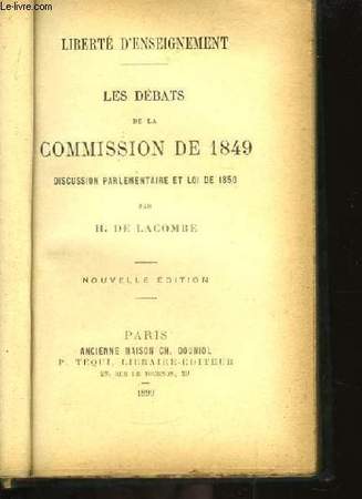 Liberté d'Enseignement. Discussion Parlementaire et Loi de 1850. Classification Dewey : 944-Histoire de France varia