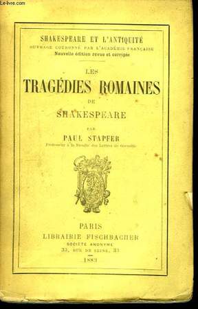 Shakespeare et l'Antiquité, Ouvrage couronné par l'Académie française. Nouvelle édition revue. Classification Dewey : 820-Littératures anglaise et anglo-saxonne