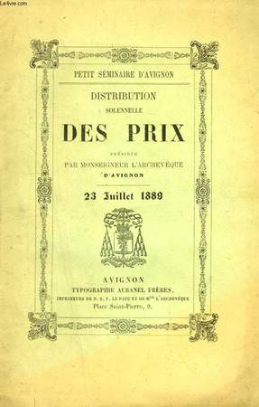 Petit séminaire d'Avignon. Présidée par Mgr l'Archevêque d'Avignon. Classification Dewey : 370-Education