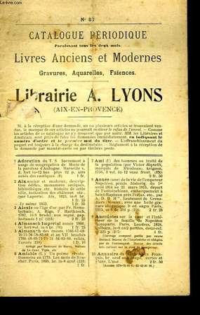 CHEZ L'AUTEUR. Non daté. In-12. En feuillets. Etat d'usage, Couv. légèrement passée, Dos satisfaisant, Quelques rousseurs. 16 pages.. . . . Classification Dewey : 17-Catalogues divers