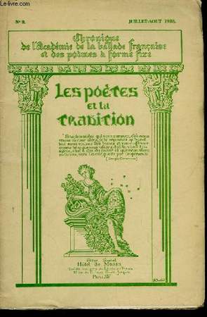 IMP. DELWARDE Edg.. Juil - Août 1938. In-8. Broché. Bon état, Couv. convenable, Dos satisfaisant, Intérieur frais. Paginé de 69 à 124. Quelques illustrations en noir et blanc, hors-texte, en bandeaux et en culs-de-lampe.. . . . Classification Dewey : 841-Poésie