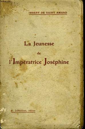 Collection " Les femmes des Tuileries ", La jeunesse de l'Impératrice Joséphine. Imbert de Saint-Amand Ecrit par Paul-Louis-Étienne Napoléon d'Oriola, également connu sous le nom d'Imbert de Saint-Amand. Cet auteur français du XIXe siècle était célèbre pour ses biographies historiques et ses ouvrages sur la noblesse française. Le nom "Imbert de Saint-Amand" désigne en réalité un pseudonyme collectif utilisé par un groupe d'auteurs français du XIXe siècle pour écrire des biographies historiques et des récits de la vie à la cour de divers personnages historiques. Leur travail était principalement axé sur la biographie de personnalités royales et impériales, y compris Napoléon Bonaparte et sa première épouse, l'impératrice Joséphine. L'impératrice Joséphine, de son vrai nom Marie Josèphe Rose Tascher de la Pagerie, est née le 23 juin 1763 à Trois-Îlets, en Martinique, qui était alors une colonie française. Sa jeunesse se déroula principalement en Martinique, où elle a grandi dans une famille créole bien établie. Voici quelques points clés de la jeunesse de Joséphine : Enfance en Martinique : Joséphine est née dans une famille de planteurs de canne à sucre. Elle était la fille de Joseph-Gaspard de Tascher, un officier de la marine, et de Rose Claire des Vergers de Sannois. Elle a grandi dans une atmosphère coloniale sur l'île de la Martinique. Éducation : Sa famille a veillé à ce qu'elle reçoive une éducation adéquate pour une jeune femme de son rang social, ce qui incluait l'apprentissage de la musique, de la danse, et des bonnes manières. Elle est également devenue compétente en mathématiques et en botanique, ce qui a influencé son intérêt pour les jardins plus tard dans sa vie. Mariage avec Alexandre de Beauharnais : En 1779, à l'âge de 16 ans, Joséphine épousa Alexandre de Beauharnais, un aristocrate français. Le couple s'installa en France, où ils eurent deux enfants. Le mariage ne fut pas très heureux, et ils finirent par divorcer pendant la Révolution française. La Révolution française : La Révolution française a bouleversé la vie de Joséphine. Son mari, Alexandre de Beauharnais, fut emprisonné et exécuté pendant la Terreur révolutionnaire. Joséphine elle-même a été brièvement emprisonnée, mais elle a survécu à la Révolution. Rencontre avec Napoléon Bonaparte : Joséphine a rencontré Napoléon Bonaparte en 1795 et ils sont tombés amoureux. Ils se sont mariés en 1796, et Joséphine est devenue impératrice des Français lorsque Napoléon est devenu empereur en 1804. La jeunesse de Joséphine en Martinique, son éducation raffinée et son mariage initial avec Alexandre de Beauharnais ont façonné son caractère et son style de vie. Elle est devenue une figure emblématique de l'histoire française en tant qu'épouse de Napoléon et impératrice de la France, et son influence a été ressentie à travers sa passion pour les arts, la mode et les jardins. volume in-8, 20x15, reliure demi cuir, bon état intérieur, 248pp. Paris, Dentu, 1892 ref/267
