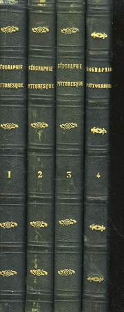 ***. XIXeme siècle.. In-4. Relié demi-cuir. Etat d'usage, Couv. convenable, Dos satisfaisant, Quelques rousseurs. 372 + 392 + 392 + 320pages. Nombreuses illustrations et cartes en noir et blanc, dans le texte et hors-texte. Nombreuses planches et doubles-planches cartes en couleurs, hors-texte. Titre, fleurons et tomaisons dorés sur le dos cuir vert foncé. Texte sur 2 colonnes. Planche dépliante, en fin de Tome 1, sur les Costumes d'Europe, avec quelques déchirures.. . . . Classification Dewey : 910.02-Géographie physique