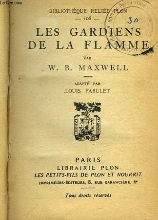 Titre : Les Gardiens de la Flamme Auteur : Maxwell W. B. Traducteur-adaptateur : Fabulet Louis Éditeur : Librairie Plon, Les Petits-Fils de Plon et Nourrit Collection : Bibliothèque reliée Plon, n° 106 Lieu et date : Paris, s.d. [années 1930] Reliure : Demi-toile verte à coins, plats marbrés vert-beige, dos lisse titré or Format : in-12, env. 18,5 x 12 cm Langue : français État : bon état d'usage - frottements aux coiffes et aux coins, mors légèrement marqués, intérieur propre au papier uniformément jauni, reliure solide Particularités : liste des ouvrages du même traducteur en tête, mention « Tous droits réservés », adresse des imprimeurs-éditeurs 8, rue Garancière, 6e Résumé : Roman psychologique et social d'un auteur britannique, situé dans une petite ville côtière dominée par une maison surnommée « le Phare ». À travers des destins familiaux et des amours contrariées, Maxwell interroge devoir, passion et réputation - ces « gardiens de la flamme » qui préservent ou étouffent les idéaux des personnages.